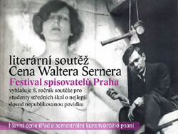 Festival spisovatelů Praha vyhlašuje literární soutěž pro studenty středních školPraha, 4.1.2012 11:03, (ROMEA) Nadační fond Festival spisovatelů Praha vyhlašuje 8. ročník literární soutěže o nejlepší dosud nepublikovanou povídku. Studenti středních škol, kterým je soutěž určena, mohou své příspěvky posílat až do konce února 2012. Ceny pro vítěze jsou v letošním roce mimořádně atraktivní. celý článek